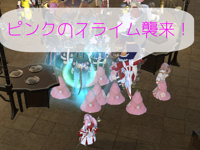 彫金師ギルドが凄いことになってましたね。何で皆さんピンクのミニプリン連れてるんだろうと思ったら、お姫様ミニオンの後姿でした